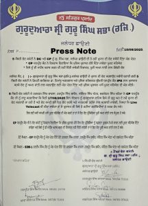 5 ਮੈਂਬਰੀ ਚੋਣ ਕਮੇਟੀ ਦੇ ਹਰਸ਼ਰਨ ਸਿੰਘ ਚਾਵਲਾ, ਹਰਪ੍ਰੀਤ ਸਿੰਘ ਭਸੀਨ, ਸਵਿੰਦਰ ਸਿੰਘ ਖੱਟਰ, ਜਗਮੋਹਨ ਸਿੰਘ ਖਹਿਰਾ ਨੇ CP ਧਨਪ੍ਰੀਤ ਕੌਰ ਜੀ ਨੂੰ ਜਾਣੂ ਕਰਵਾਇਆ ਕਿ ਮਿਤੀ 17/08/2025 ਦਿਨ ਐਤਵਾਰ ਨੂੰ ਗੁਰਦੁਆਰਾ ਸਾਹਿਬ ਵਿਖੇ ਹੀ ਗੁਰੂ ਘਰ ਦੇ ਨਵੇਂ ਪ੍ਰਧਾਨ ਦੀ ਚੋਣ ਕਰਵਾਈ ਜਾ ਰਹੀ ਹੈ ਅਤੇ ਚੋਣ ਕਮੇਟੀ ਵਲੋਂ ਇਹ ਚੋਣ ਸੁਚੱਜੇ ਅਤੇ ਪਾਰਦਰਸ਼ੀ ਤਰੀਕੇ ਨਾਲ ਕਰਵਾਈ ਜਾਵੇਗੀ,