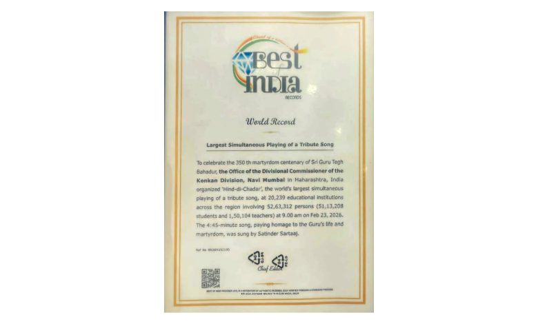 52.6 ਲੱਖ ਵਿਦਿਆਰਥੀਆਂ ਤੇ ਅਧਿਆਪਕਾਂ ਨੇ ਸਮੂਹਿਕ ਤੌਰ ‘ਤੇ ‘ਹਿੰਦ ਦੀ ਚਾਦਰ’ ਗਾ ਕੇ ਬਣਾਇਆ ਵਿਸ਼ਵ ਰਿਕਾਰਡ
