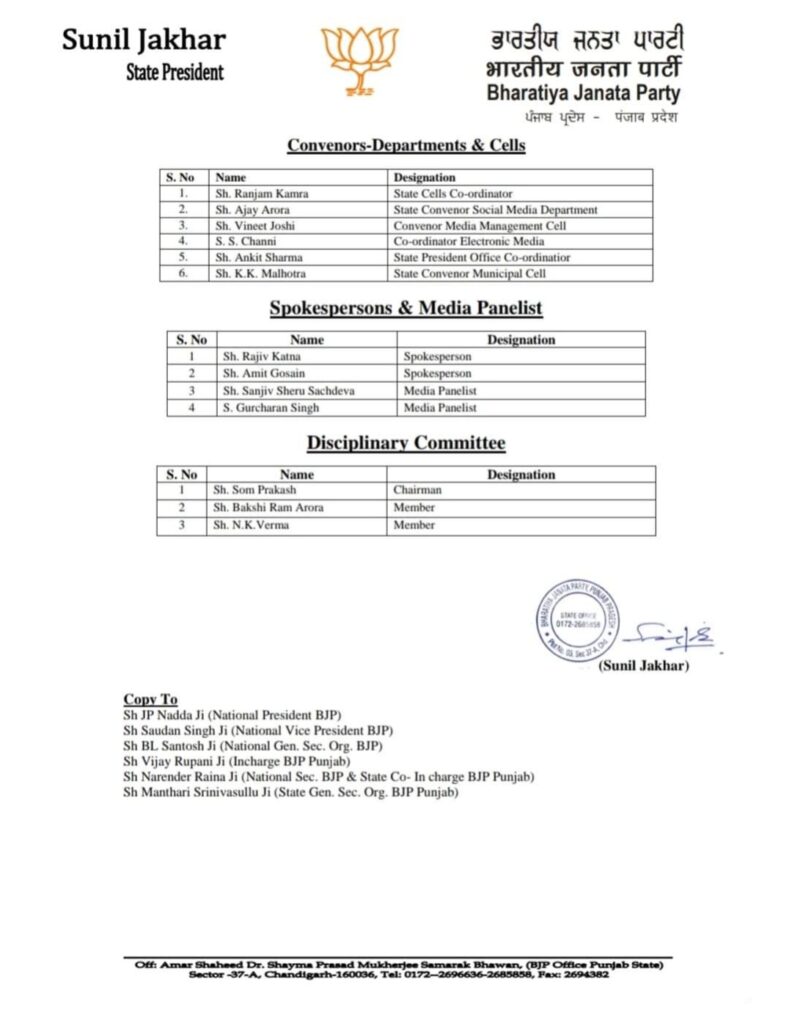BJP ने पंजाब में 35 नेताओं को बनाया प्रधान, सूची की जारी