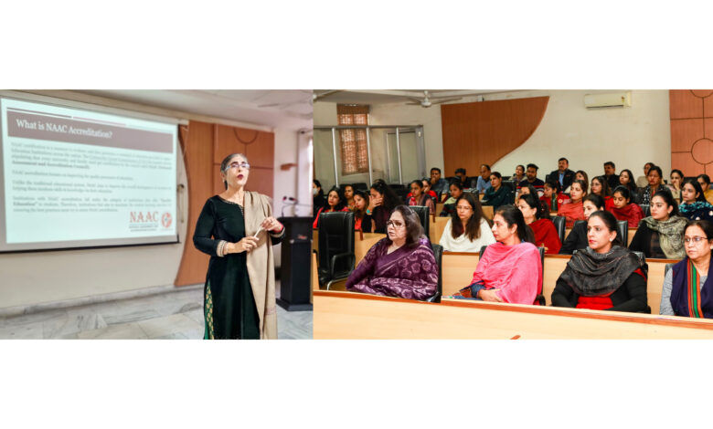 जालंधर, 02 दिसंबर (धर्मेंद्र सौंधी) : ए.पी.जे. कॉलेज ऑफ फाइन आर्ट्स जालंधर की तरफ से द इंटरनल क्वालिटी एश्योरेंस सेल की तरफ से कैपेसिटी बिल्डिंग प्रोग्राम का आयोजन करवाया गया। जिसमें स्रोत वक्ता के रूप में अंग्रेजी विभाग की अध्यक्ष डॉ सुनीत कौर ने NAAC एवं NEP के महत्तव एवं उद्देश्य से प्राध्यापकगण को परिचित करवाया। उन्होंने AQAR(The annual quality assurance report) की सात विभिन्न कोटियों से परिचित करवाते हुए उनको विस्तार से समझाया और कहा कि किसी भी शैक्षणिक संस्था के विकास में प्रेरित एवं प्रोत्साहित स्टाफ की भूमिका अहम होती है और किसी भी संस्था को बुलंदियों तक पहुंचाने में IQAC सीढ़ी की तरह काम करता है और प्रतिवर्ष अपना मूल्यांकन करते रहने से संस्थाओं के विकास की भी निरंतर संभावना बनी रहती है।