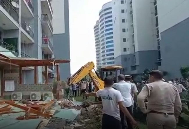 ਨੋਇਡਾ, 08 ਅਗਸਤ (ਬਿਉਰੋ) : ਉੱਤਰ ਪ੍ਰਦੇਸ਼ ਦੇ ਨੋਇਡਾ ਅਥਾਰਟੀ ਦੀ ਟੀਮ ਓਮੈਕਸ ਸੋਸਾਇਟੀ ਪਹੁੰਚੀ ਅਤੇ ਔਰਤ ਨਾਲ ਦੁਰਵਿਵਹਾਰ ਕਰਨ ਵਾਲੇ ਨੇਤਾ ਸ਼੍ਰੀਕਾਂਤ ਤਿਆਗੀ ਦੇ ਗੈਰ-ਕਾਨੂੰਨੀ ਨਿਰਮਾਣ ‘ਤੇ ਕਾਰਵਾਈ ਕਰਦੇ ਹੋਏ ਉਹਨੂੰ ਤੋੜਨਾ ਸ਼ੁਰੂ ਕਰ ਦਿੱਤਾ। ਜਾਣਕਾਰੀ ਮੁਤਾਬਕ ਤਿਆਗੀ ਨੇ ਆਪਣੇ ਫਲੈਟ ਦੇ ਆਲੇ-ਦੁਆਲੇ ਨਾਜਾਇਜ਼ ਉਸਾਰੀ ਕੀਤੀ ਸੀ। ਜਿਸ ਨੂੰ ਹਥੌੜੇ ਅਤੇ ਬੁਲਡੋਜ਼ਰ ਦੀ ਮਦਦ ਨਾਲ ਤੋੜਿਆ ਗਿਆ।
