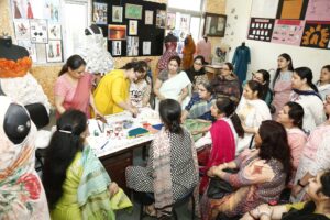 जालंधर, 07 जुलाई (धर्मेंद्र सौंधी) : हंस राज महिला महाविद्यालय के कौशल विभागों ने संकाय संवर्धन कार्यक्रम के तहत संकाय के लिए एक सत्र आयोजित किया। रिसोर्स पर्सन कौशल पाठ्यक्रम संकाय प्रमुख और डिजाइन विभाग प्रमुख डॉ. राखी मेहता, पिडिलाइट कंपनी की क्रिएटिव आर्टिस्ट श्रीमती नवरूप कौर और कॉस्मेटोलॉजी विभाग की प्रमुख सुश्री मुक्ति थीं। दिन की शुरुआत उद्घाटन सत्र से हुई. डॉ. राखी मेहता ने स्टाफ सदस्यों को मुद्रण और सतह अलंकरण की कला के बारे में बताया और चर्चा की।