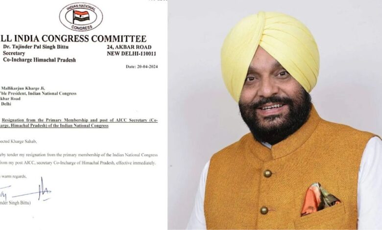 ਹਿਮਾਚਲ ਕਾਂਗਰਸ ਦੇ ਸਹਿ-ਇੰਚਾਰਜ ਤਜਿੰਦਰ ਬਿੱਟੂ ਨੇ ਆਪਣੇ ਅਹੁਦੇ ਤੋਂ ਅਸਤੀਫਾ ਦਿੱਤਾ ਹੈ। ਦੱਸ ਦਈਏ ਕਿ ਇੱਕ ਵਾਰ ਫਿਰ ਬੀਜੇਪੀ ਦਾ ਵੱਡਾ ਖੇਡ ਦੇਖਣ ਨੂੰ ਮਿਲ ਰਿਹਾ ਹੈ। ਬੀਤੇ ਕੁਝ ਦਿਨ ਪਹਿਲਾਂ ਹੀ ਸੁਸ਼ੀਲ ਕੁਮਾਰ ਰਿੰਕੂ ਅਤੇ ਸ਼ੀਤਲ ਅੰਗੂਰਾਲ ਆਮ ਆਦਮੀ ਪਾਰਟੀ ਛੱਡ ਬੀਜੇਪੀ ਵਿੱਚ ਸ਼ਾਮਲ ਹੋਏ ਸਨ। ਸੂਤਰਾਂ ਤੋਂ ਮਿਲੀ ਜਾਣਕਾਰੀ ਅਨੁਸਾਰ ਤੇਜਿੰਦਰ ਬਿੱਟੂ ਅੱਜ ਦਿੱਲੀ ਵਿਖੇ ਅਮਿਤ ਸ਼ਾਹ ਦੀ ਮੌਜੂਦਗੀ ਵਿੱਚ ਭਾਜਪਾ ਵਿੱਚ ਜਾ ਸਕਦੇ ਹਨ।