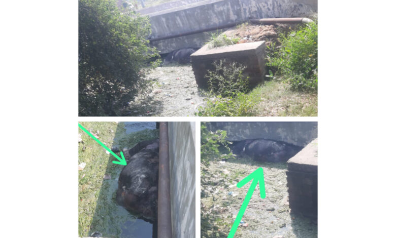 जालंधर, 06 अक्तूबर (कबीर सौंधी) : जालंधर के गाँव रंधावा की नहर में काफी दिनों से मृत गाय फंसी होने से इतनी बदबू पैदा हो गई है कि वहां से गुजरना भी दुश्वार हो गया है। जिसको काफी लोगो ने देख कर प्रशासन को फोन किया मगर किसी ने भी फोन नहीं उठाया और इस सम्बन्धी वहां से गुजर रहे संजीव ने जब नजदीक जाकर देखा तो मृतक गाय काफी दिनों से फंसी होने के कारण सड़ चुक्की है जिसके कारण काफी बदबू फ़ैल रही है।