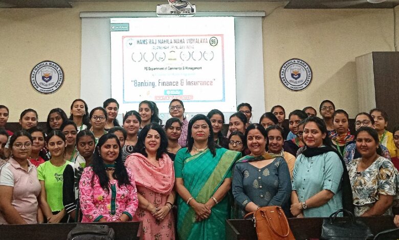 जालंधर, 23 जून (कबीर सौंधी) : हंस राज महिला महा विद्यालय, जालंधर के कॉमर्स क्लब ने प्रिंसिपल प्रो डॉ. (श्रीमती) अजय सरीन, श्रीमती बीनू के कुशल मार्गदर्शन में बजाज फिनसर्व के सहयोग से बैंकिंग, वित्त और बीमा (सीपीबीएफआई) में स्किल्ड कोर्स सर्टिफिकेट प्रोग्राम का आयोजन किया। पाठ्यक्रम के समन्वयक गुप्ता ने बताया कि इस पाठ्यक्रम के संचालन का उद्देश्य छात्रों के रोजगार कौशल को बढ़ाना है। उन्होंने बताया कि ऑनलाइन पाठ्यक्रम के 46 दिनों की अवधि के दौरान, छात्रों को बैंकिंग, वित्त, बीमा और साक्षात्कार आचरण के व्यावहारिक पहलुओं के बारे में जानकारी दी गई। पाठ्यक्रम को चार मॉड्यूल में विभाजित किया गया था जिसमें स्वस्वरूप का प्रबंधन, संचार और कार्यस्थल कौशल, खुदरा बैंकिंग का अवलोकन और वित्त का अवलोकन शामिल था।