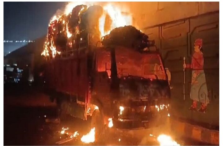 LPG Cylinder से भरे ट्रक में लगी भीषण आग, लगातार ब्लास्ट होने से इलाके में दहशत