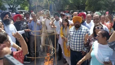 जिला कांग्रेस कमेटी शहरी व देहात ने पंजाब के मुख्यमंत्री भगवंत मान का पुतला जलाकर किया प्रदर्शन