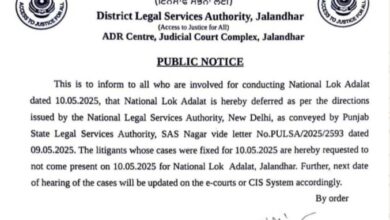 ਸ਼ਨੀਵਾਰ 10 ਮਈ ਨੂੰ ਲੱਗਣ ਵਾਲੀ ਰਾਸ਼ਟਰੀ ਲੋਕ ਅਦਾਲਤ ਮੁਲਤਵੀ, ਅਗਲੀ ਮਿਤੀ ਈ-ਕੋਰਟ ਜਾਂ …..
