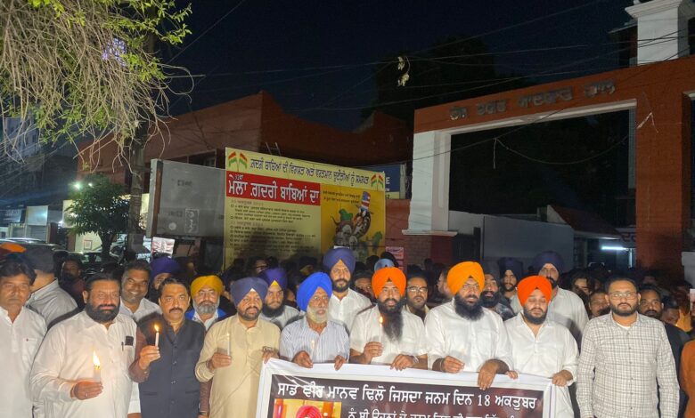 जालंधर, 19 अक्तूबर (कबीर सौंधी) : मानवजीत सिंह ढिल्लों और जश्नबीर सिंह ढिल्लों की आत्महत्या के मामले में आज द्वारा जालंधर में कैंडल मार्च निकाला गया। इस दौरान उनके साथ अकाली दल के सीनियर नेता बिक्रमजीत सिंह मजीठिया सहित अलग-अलग पार्टियों के नेता मौजूद रहे। बता दें कि 2 दिन पहले उच्च न्यायालय द्वार निलंबित एस.एच.ओ. नवदीप सिंह की जमानत याचिका खारिज कर दी गई, जबकि नामजद मुंशी बलविंदर कुमार की अग्रिम जमानत याचिका मंजूर कर ली गई।